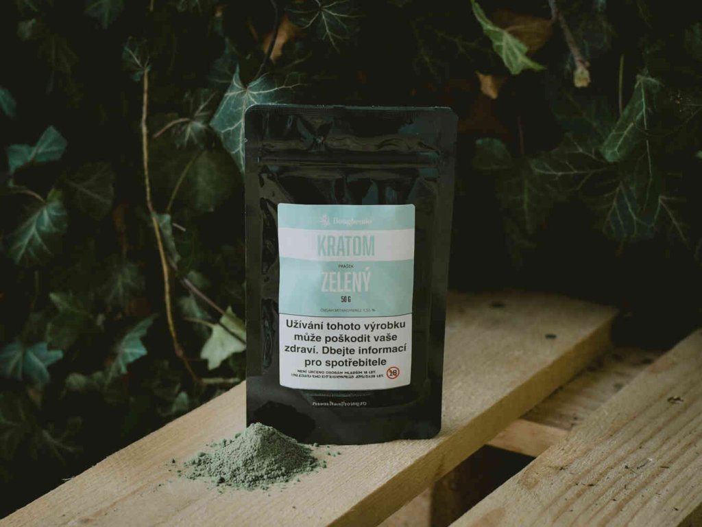 Psychomodulační látka Kratom prášek zelený "Dragon" z Indonésie
