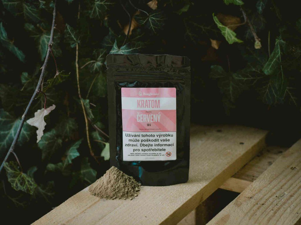 Psychomodulační látka Kratom prášek červený z Indonésie.